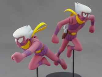 劇場版(0011)や平成TV版では色違いのコスチュームでしたが原作カラー版では2人とも赤紫色で塗られてました。