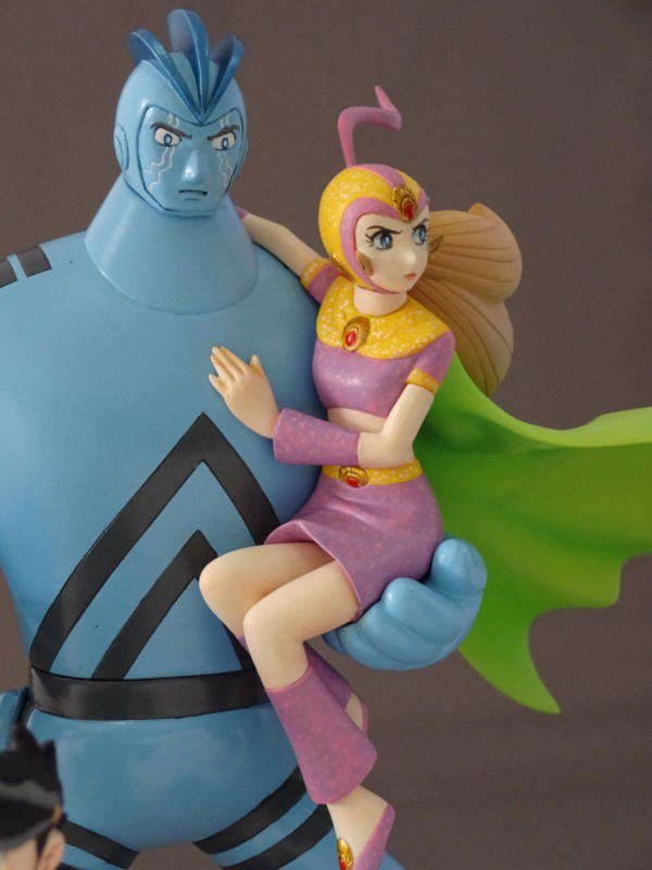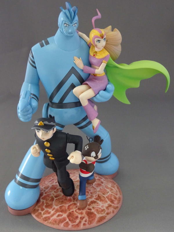 ニューヨーク上空で肉ボールサメディと戦う4人の戦士をイメージして作りました。サンボはベガとルーナをテレポートするポーズで、丈はサイコキネシスでひとっ飛びのポーズです。ポリパテで原型を作りレジンに置き換えて、コミックスの表紙や作中のトーンを参考に色を塗りました。