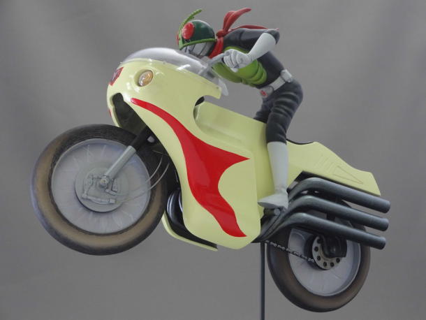 原作版の仮面ライダーとサイクロン号のイラストを立体化しました。