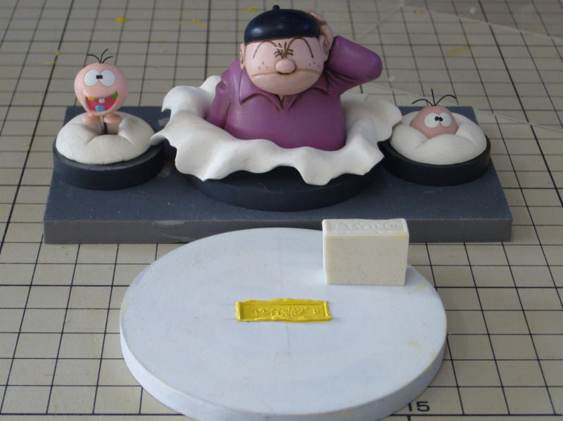 版権元のシリコン印は章太郎さんたちを飾っているケースの中に厳重に保管しています。 さっそく、台座の裏にポリパテ印、捺しました。 これでやっとエンジンがかかります。商売!商売! |