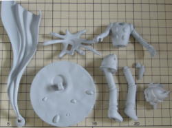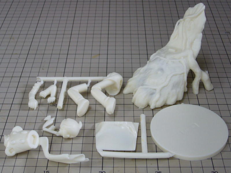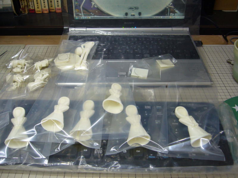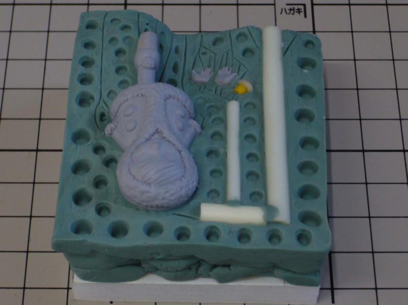本体と両手と小石の全4パーツ。 ひとつの型にまとまりました。 |