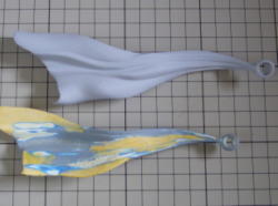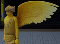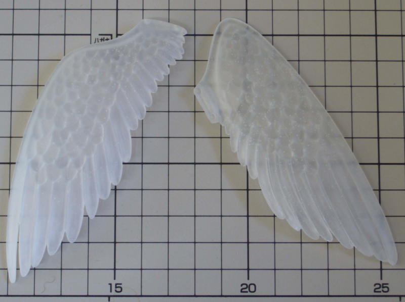 ほぼ黄色一色の天使に透明色で変化を付けてみようと思いましたが、表と裏のモールドが透けて重なって見えるのが気になります。実際に色を塗ってみないと使えるかどうか分かりませんね。 |