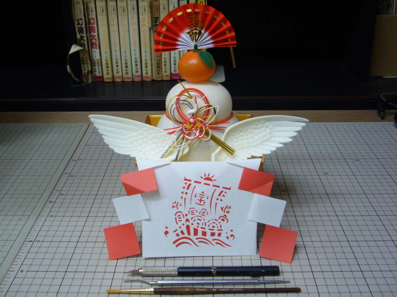 ちょっと豪華に天使の羽付き鏡餅です。 |