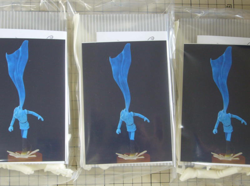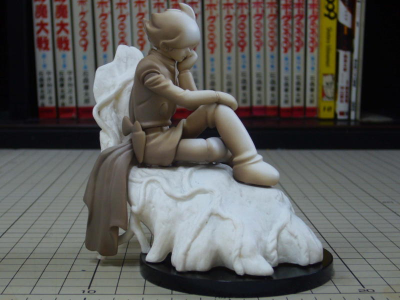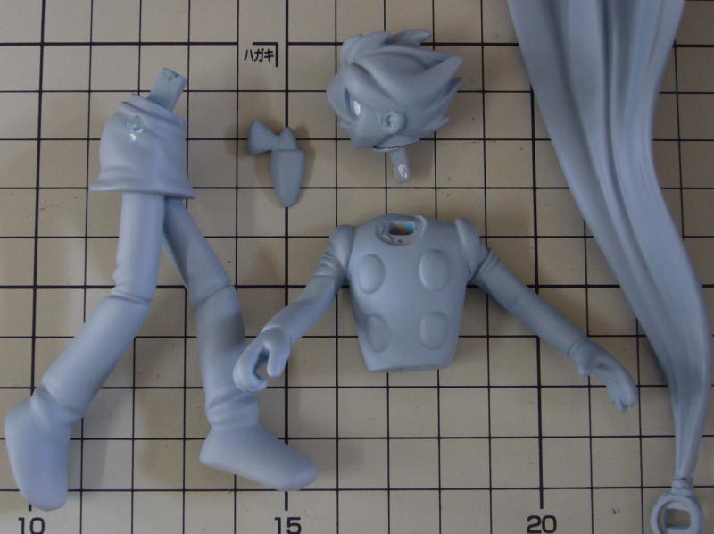 うまく気泡が抜けなかったところがあったのでポリパテで補修。シリコン型も修正しました。 ※キット版は頭と上半身を一体に作り直して全5パーツになりました。 |