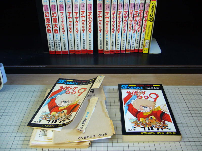 「サイボーグ009」全15巻と「幻魔大戦」全2巻のセットをヤフオクで落札しました。「サイボーグ009」の11巻から15巻は読んだことはありますが購入は初めて。「幻魔大戦」は1巻ラストの丈のセリフが「き○○い!」から「精神障害者!」に変更された版です。ほどよくダメージがあって気兼ねなくまたボロボロになるまで読めそうです。 |