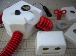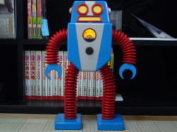 ロボット、ホームデスクに立つ! こいつが自力でやれる唯一の芸です。 何かの撮影に使用。 本日納品。 |