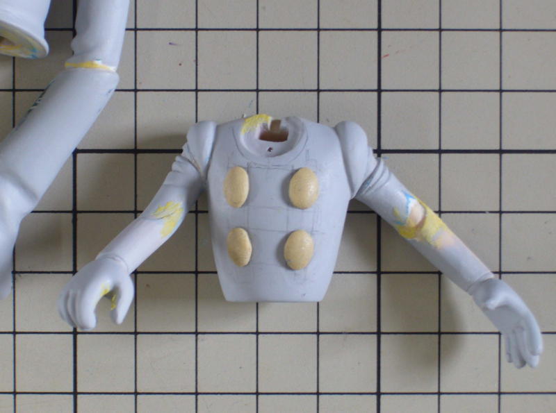 エポパテ製のボタンを付けて上半身の改造終了! |