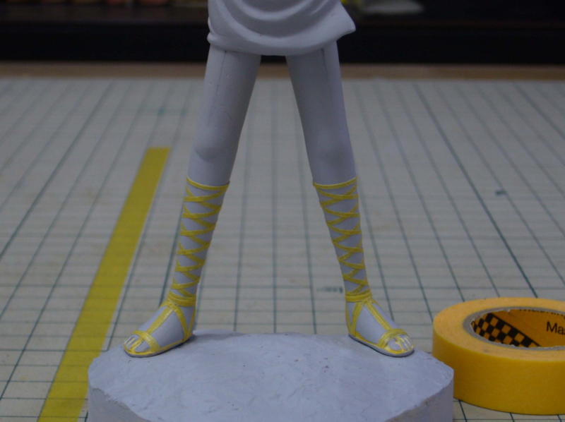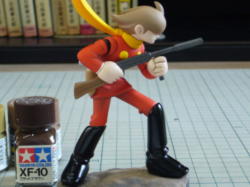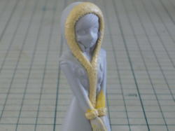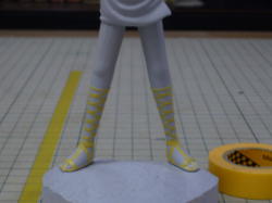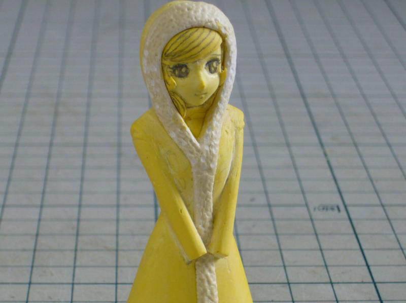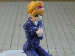 色は講談社のカラー版とか画集を参考にしました。 タイトな紫の服(画像は青く撮れてます)に白いドット柄。 塗装の仕方でひどくセンスの無いものになってしまうかも・・・ 出来ました。良いではないですか。 |