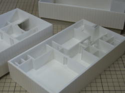 スチレンボードをカットして組み立ててます。 各フロアの間取りが見れるように重箱仕様です。 デスク〈カッターマット〉新調しました! |