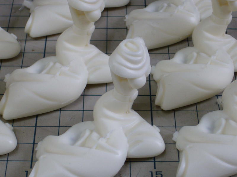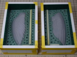 流し込みの時、ダフネの気泡がうまく抜けず苦労しました。 手流しでは少々無理な型取りをしたためですが、型を傾けて対処。少量生産なので何とかなります。 |