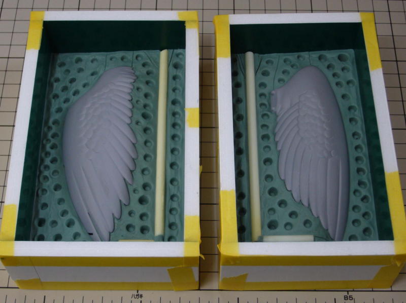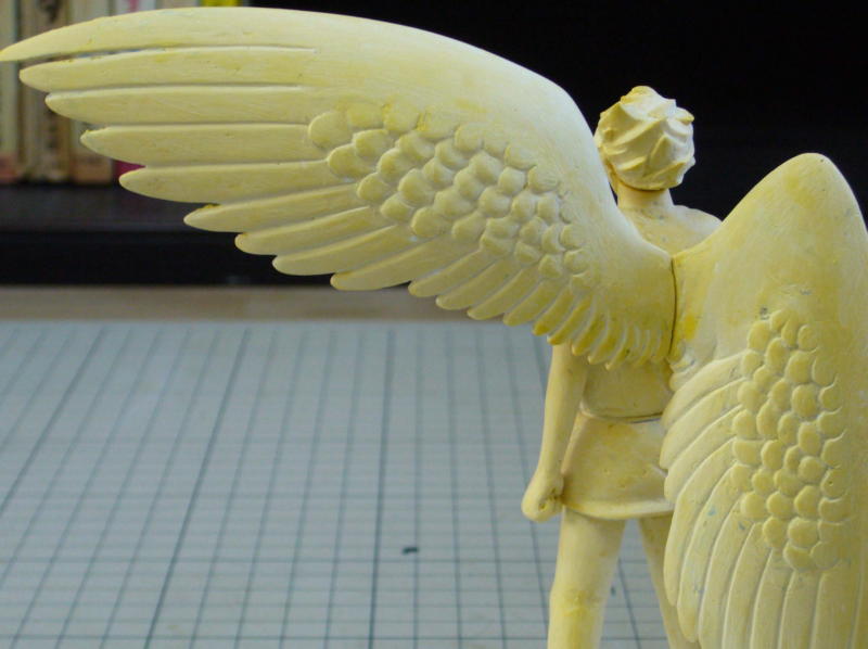 天使本体もクレオスのサーフェイサーを吹いて原型完成。 型取りしてレジン複製します。 |
