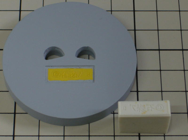 まだ○○プロから当日版権の許諾を頂いていないのですが そろそろ原型を完成させ複製のための型取りをしないと間に合わない時期・・・きっと章太郎さんなら快諾してくれるだろうと、版権元のシリコン印捺しちゃいました。 |