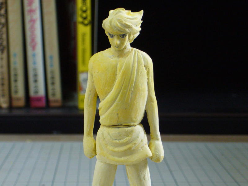 10年位前、造形工房ゼペットで作ったジュンのシリコン型を探したのですが見つからないので、原型から新たに簡易型を作り、ポリパテで複製。新生ジュンの素体にしました。そうまでして楽をしたいのかと言われそうですが、そうまでして楽をしたいんですよ。 四肢と頭を切り貼りして再造形。 |