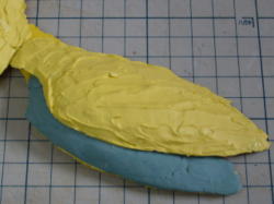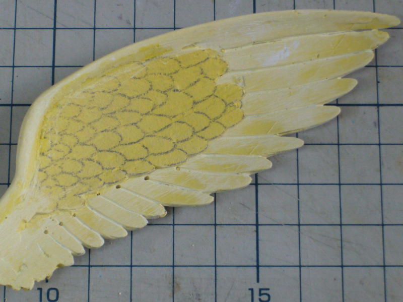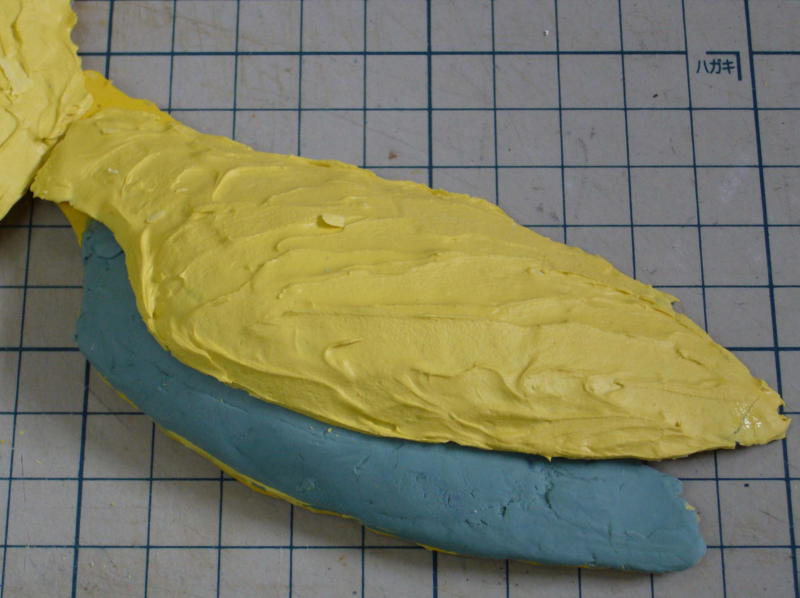 ポリパテを1o厚の板状にして半硬化させ、生ポリパテで翼の基に貼り付けました。 |