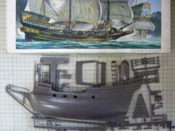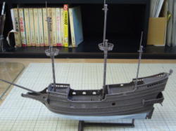仕事で全長1500oの 帆船を作ることになったので参考用に形の似てるガレオン船のプラモを購入しました。 工期は4ヶ月。プラモの箱を開け、パーツと組立図を交互に眺める・・・このプラモを組み立てるだけで4ヶ月かかりそうです。 |