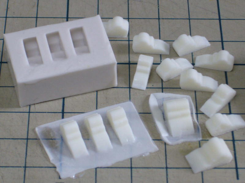 お気に入りのクレオスの型取用油粘土で型を取ってます。 とっても扱いやすい油粘土ですが開封して半年くらいで油分が飛んで硬くなってしまうのが唯一の難点です。 |
