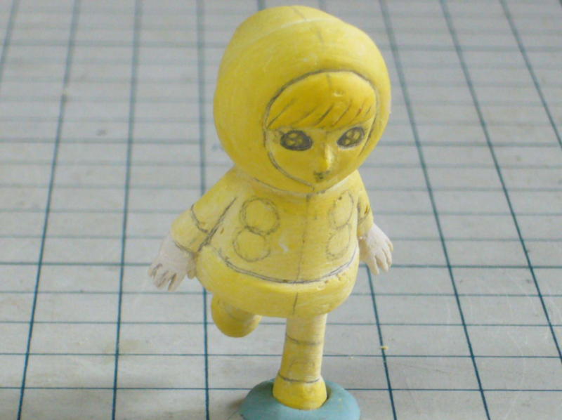 少女のコートは、表紙版を含め登場するたびにデザインが変わってるので、ここは大人になった少女と並べられるように初登場のデザインに変更。胸元のふわふわがYの字になってるほうがかわいいです。顔の輪郭を少々丸め、手足を短めにしてさらにかわいらしく変更。 ポーズは朝日ソノラマ版です。 |
