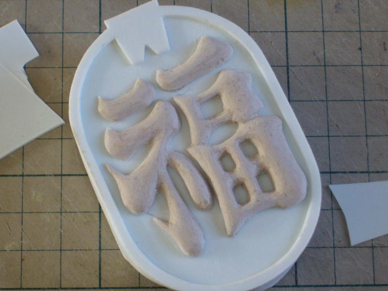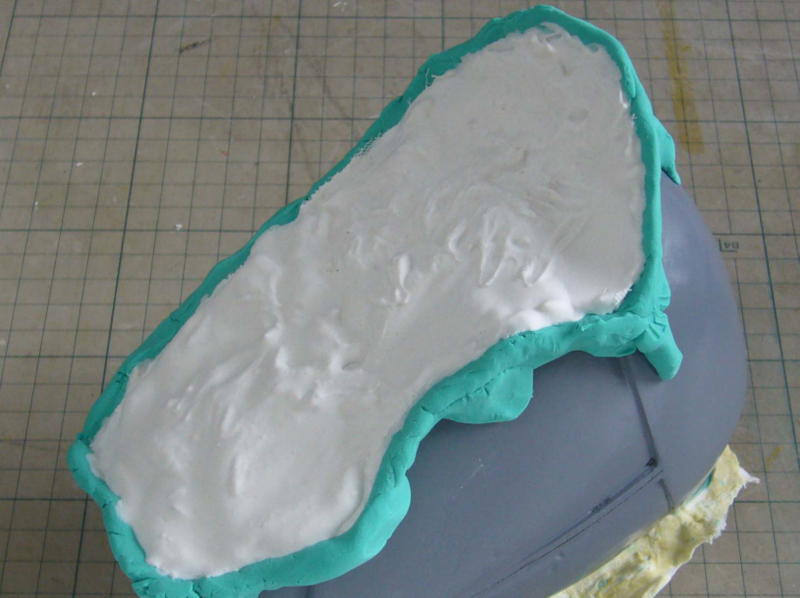 原型に油粘土で土手を作り、離型材を塗って石膏で型取りしました。 |