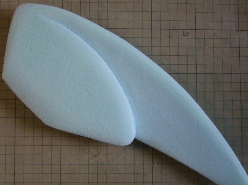 カッターでVの字に溝を切り、紙やすりで形を整えました。 |