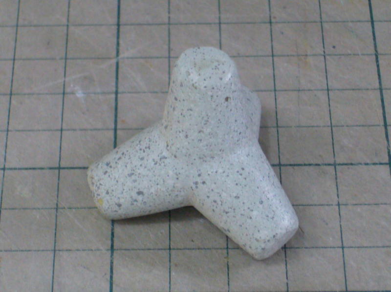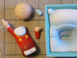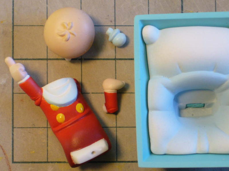 マシュマロのようにやわらかい軽量粘土で、使用感はボソボソでノビが無い。、これでモノを作るのはかなりたいへんそうだが、型に使う分にはぜんぜんOK! 乾燥に時間がかかりそうなのでトースターで加熱したらすぐに焦げてしまった。なんか膨らんだ気もする。 |