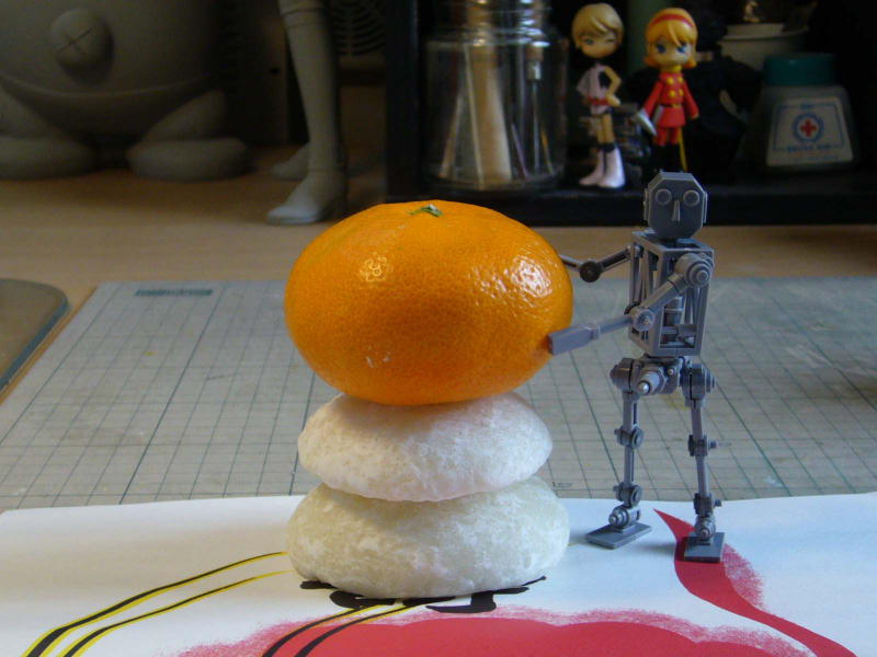 みかんを支えてるのは昨年最後に作ったプラモで、ネットランナー特別付録の「中華キャノン」です。 ・・・中華キャノンはあまり気にしないでください。 |
