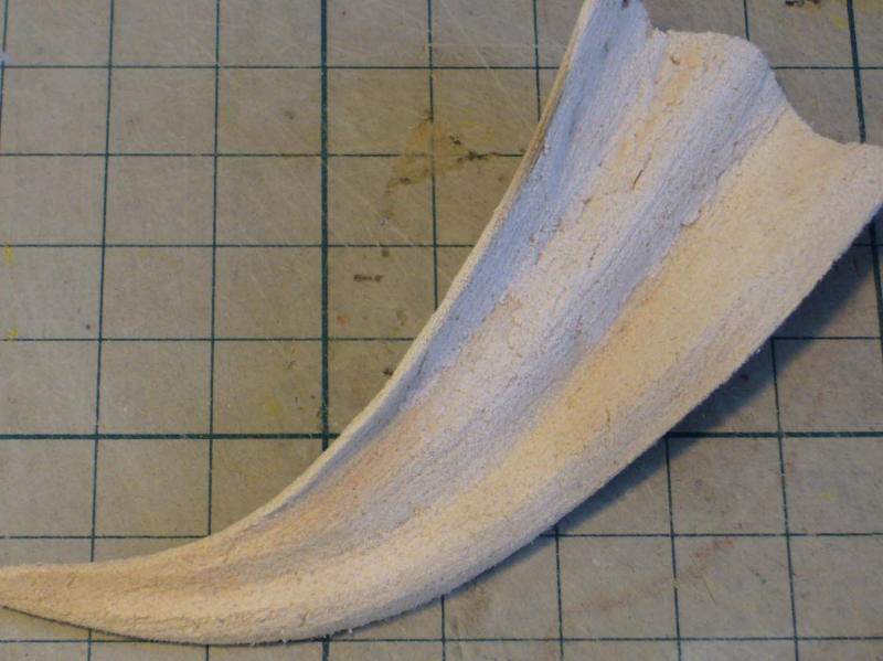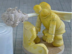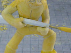 後から追加したい小さめのシワはエポパテで凸型に盛り、その裏を凹型に削ります。裏を盛ったら表を削ります。このへんは行き当たりばったりで偶然いい形になったりします。 |