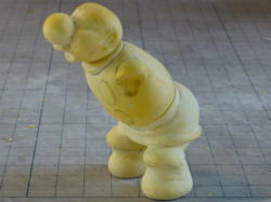 完成後。重心が後ろ過ぎたので足の接地面をパテで修整。 原型の段階で良しとしても色付けしてから気付くことが多々、多々!あります。 |
