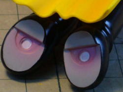 「ながれ星!」ではかかとに噴射口を付けましたが、今回は新説・土踏まずVer.で作りました。・・・こっちが正解かなぁ・・・。 原作の怪物島編では噴射口が2ヶ所、土踏まずとかかとの両方に描かれてます。 |