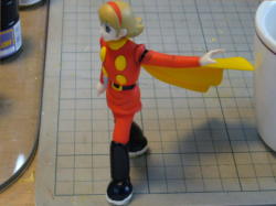 「まって!」なので、上体を起こして自分も待ってるポーズに変更。服やブーツのシワも作り直しです。 スーパーガンはホルスターに納まりました。 |