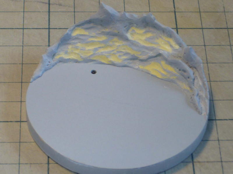 ポリパテを盛った上に白波をエポパテで表現。ルーターで起伏をつけました。樹木も炎も海面も作り方が同じなので、サフのままだとどれも同じに見える。青で塗ってあげれば海面に見えます・・・ように。 |