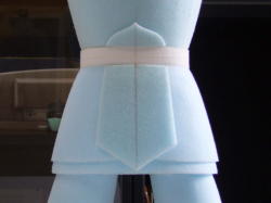 ベルトのラインが低いなぁ・・・ ウエストのダボを生かすように、お腹を4o厚の輪切りにして腰へ移植しました。 |