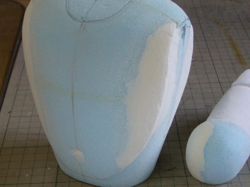 石粉粘土のスタイロホームへの食い付きは良好。 自然乾燥させ、完全に硬化したら紙やすりで削って成形します。 |
