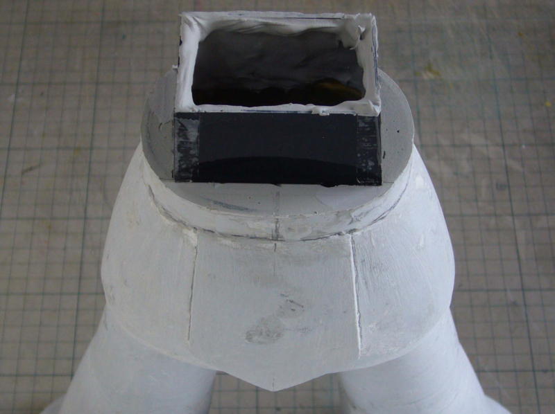 レジン製ジャンクパーツマフラーを改造して制作。 レジンパーツを縦に2分割、間と両端をエポパテで幅増し、上に縦増し、全体に大きくしました。 |