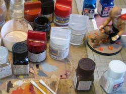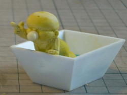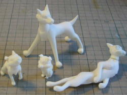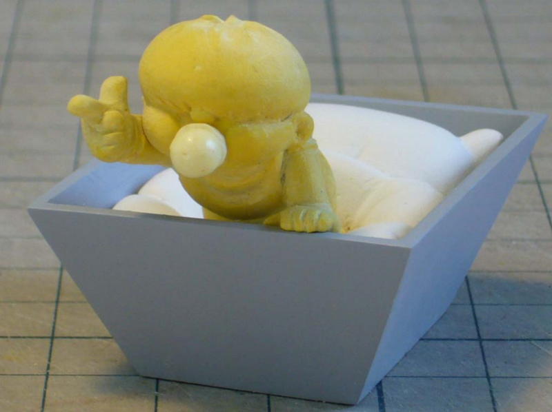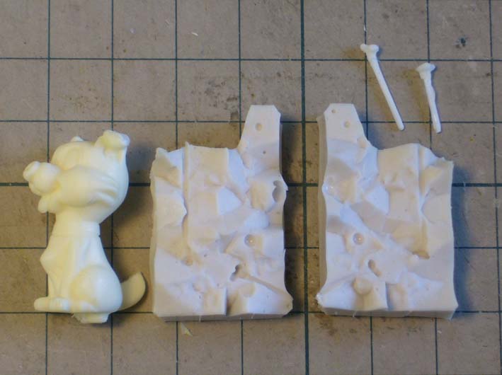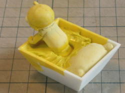 寒さのため複製したレジンにまだら模様が入ってしまう。 レジン(液体)の入った缶をファンヒーターで温めてから型流しをし、ダンボール箱を温室代わりにして硬化させる。が、それでも模様が入る。メーカーに問い合わせたら硬化不良ではないらしいけど気になる。そんなに今年の冬は寒いのか。人間よりレジンの方が寒さに敏感です。 |