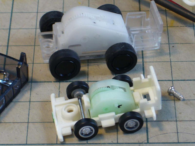 ちびっこなのでメカも標準タイプと比べるとかなり小さい。 さっそくメカを取り出して、バスのボディーは捨てました。 |