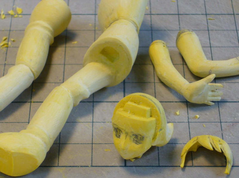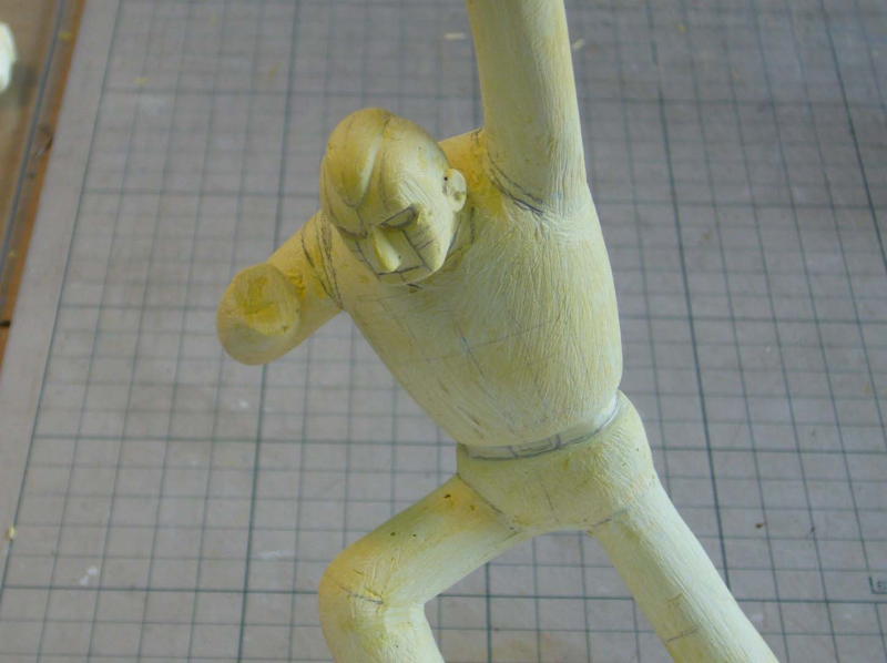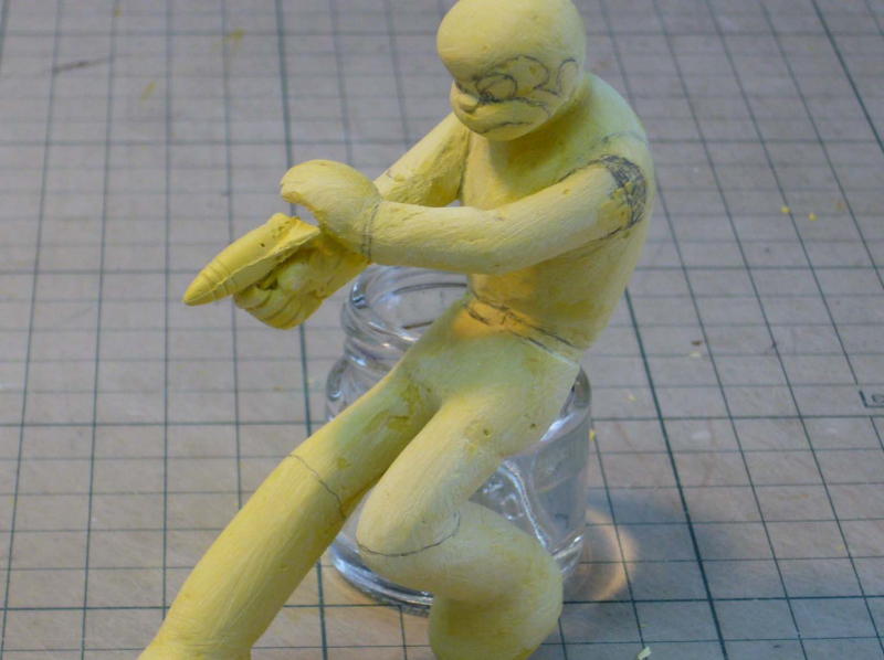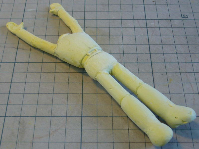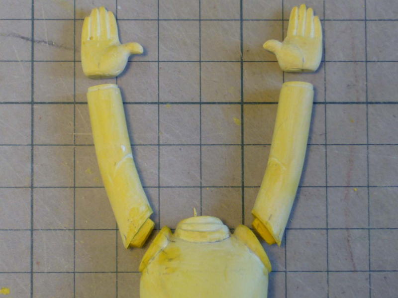 ほとんどの関節で一旦切り離し、ポーズを付けて固定。かなり細身なのでパテを盛ってヨミ編らしい体型にします。 |