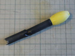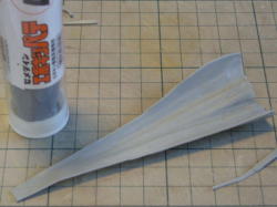 ライターの火であぶってダメージを表現しようとしましたが、材質のせいか思うような形にはなりませんでした。 先端はポリパテを盛って成形。 |