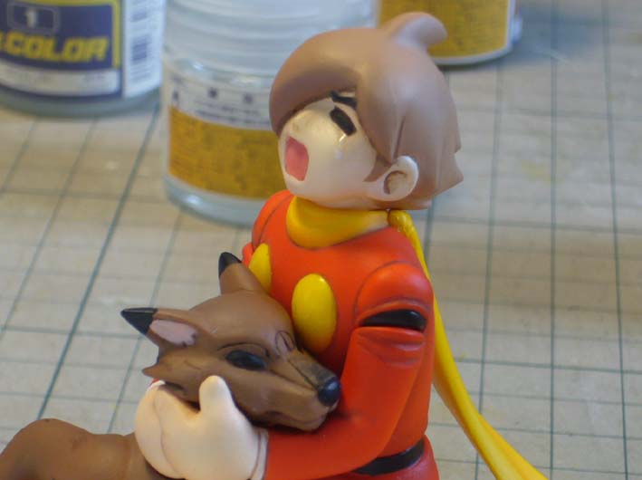 ラッカーのクリアーを厚めに塗って涙を表現。 しずくのふくらみを強調するようにホワイトでワンポイントを入れました。 今夜は今季一番の雪になるらしい。『009』を作ってるとこういうめぐり合わせのようなことがよくあります。 『クビクロ・冬』完成。 |