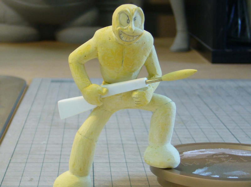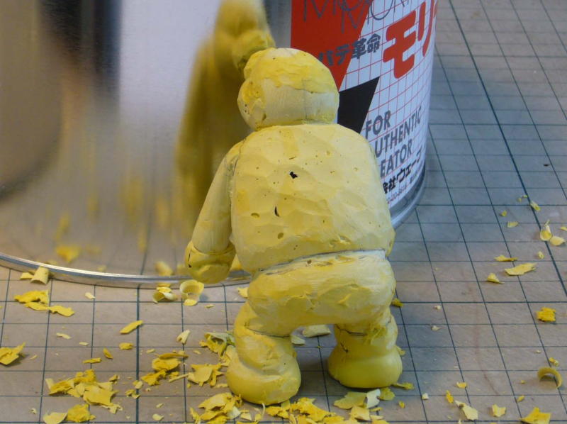 原作コミックだとギザギザの線で描かれてるイワンの髪型。 コレを表現しようとしたらアフロヘアになってしまったので作業中止。頭頂部のみモールドを残して元に戻しました。 3歩進んで4歩下がった感じ。 |