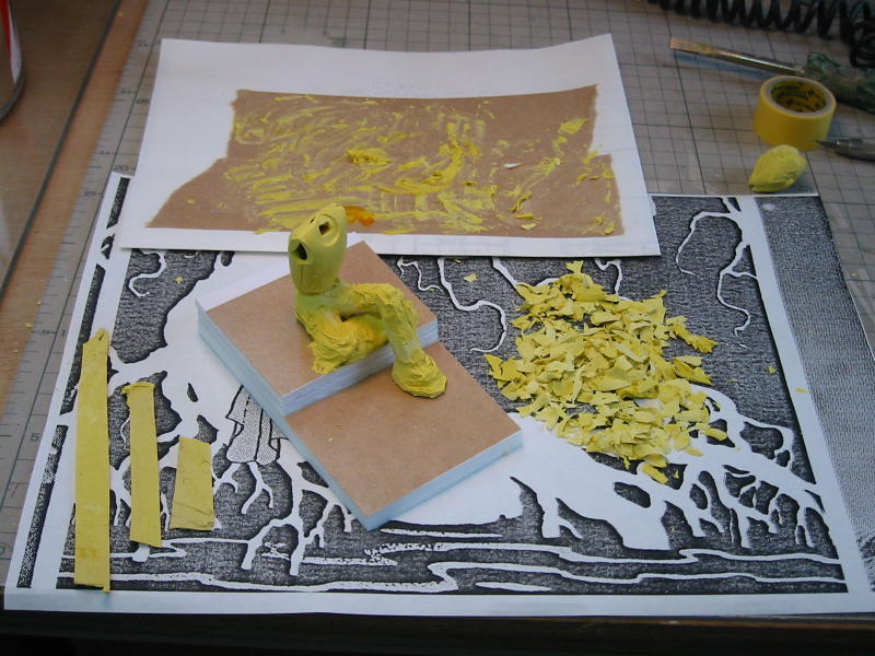イラスト通りの樹木と沼と月とを立体化すると大ジオラマになるので、イラストの世界観をコンパクトにまとめようと作ってたらジョーが接してる座面のみのミニミニジオラマになった。 |