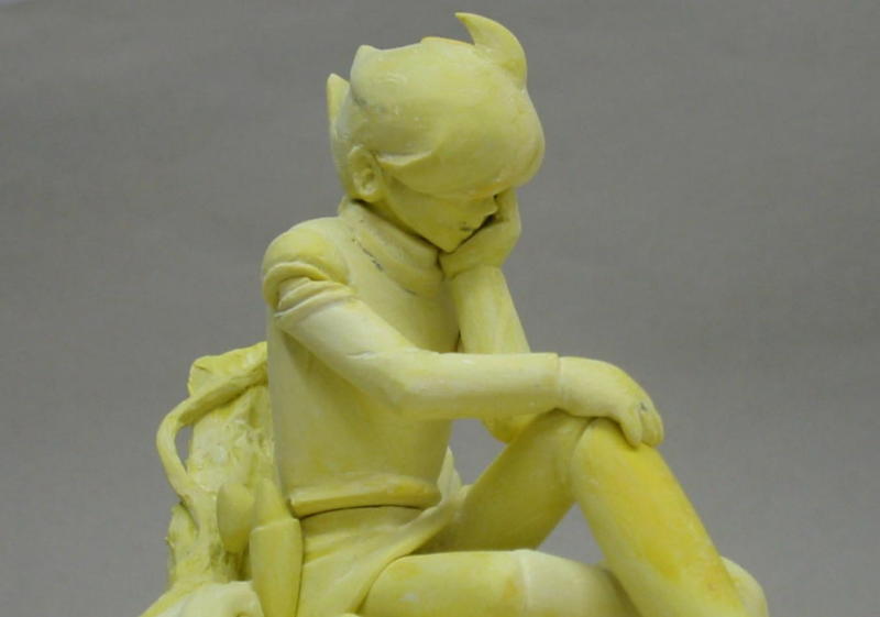 「サイボーグ009その世界」に収録されている4枚のイラストの中の1枚。 4枚ともジョーがそれぞれの時間や空間にトリップしているような『孤独』を感じさせる作品です。 イラストを模型の原寸サイズで起こして制作開始。「霧の時間」の上半身をポリパテで複製して芯に使用。下半身はポリパテで新造しました。 |