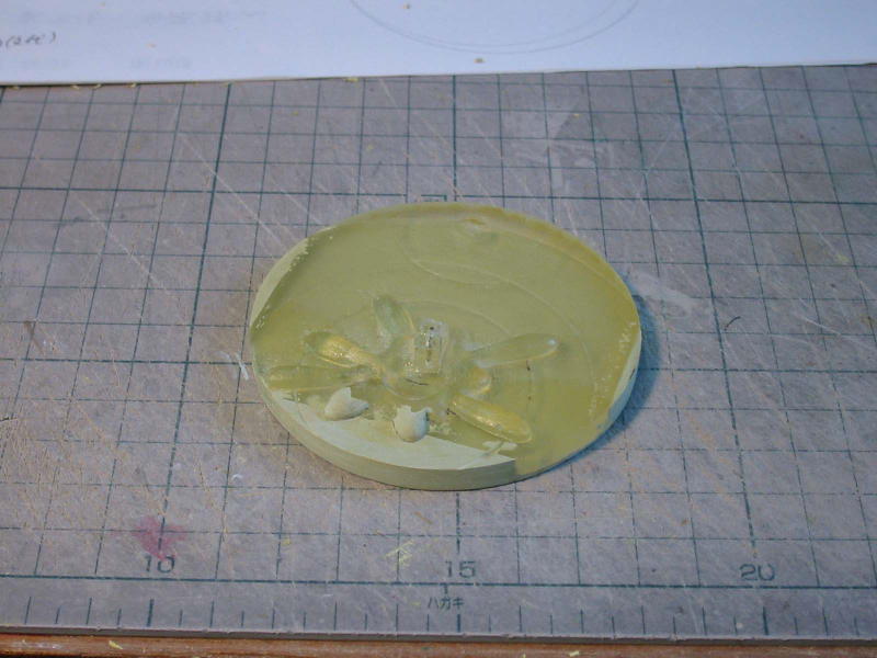 四角の台座を丸型に改造。 ワンフェス販売の1/15シリーズの規格に合わせた形。 なんだ規格って。 |