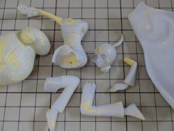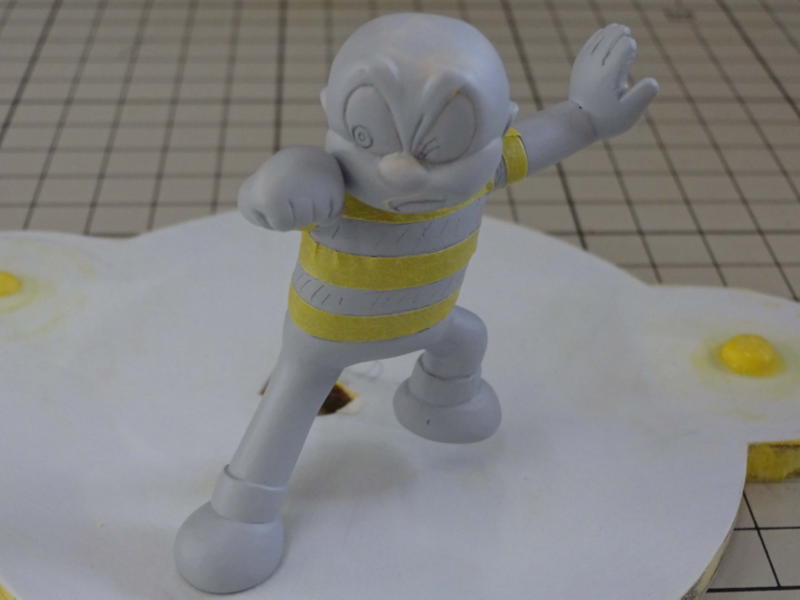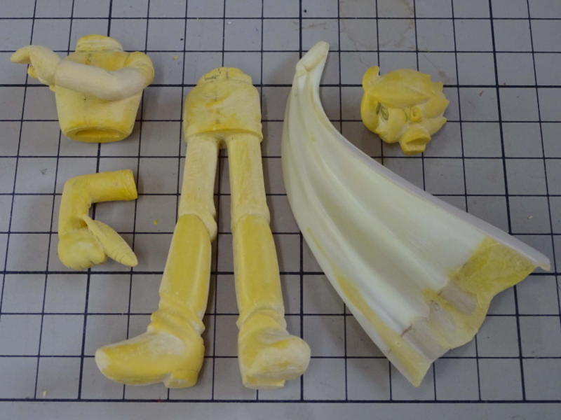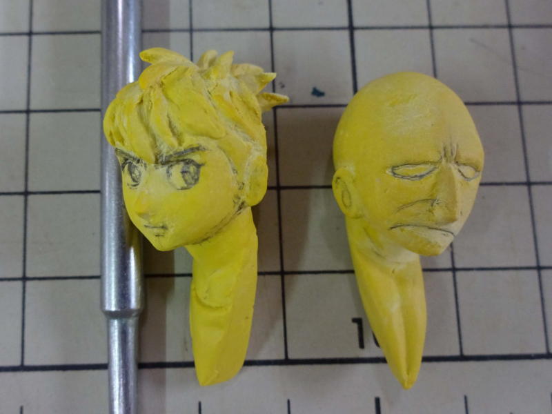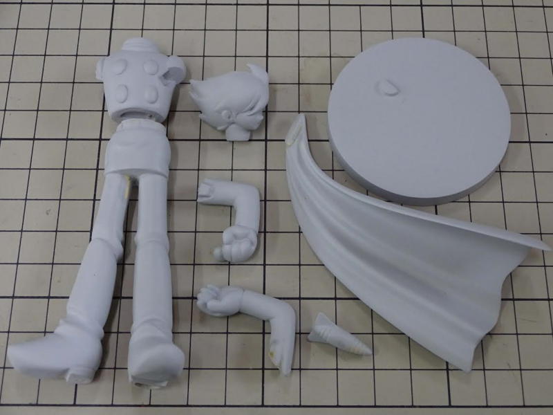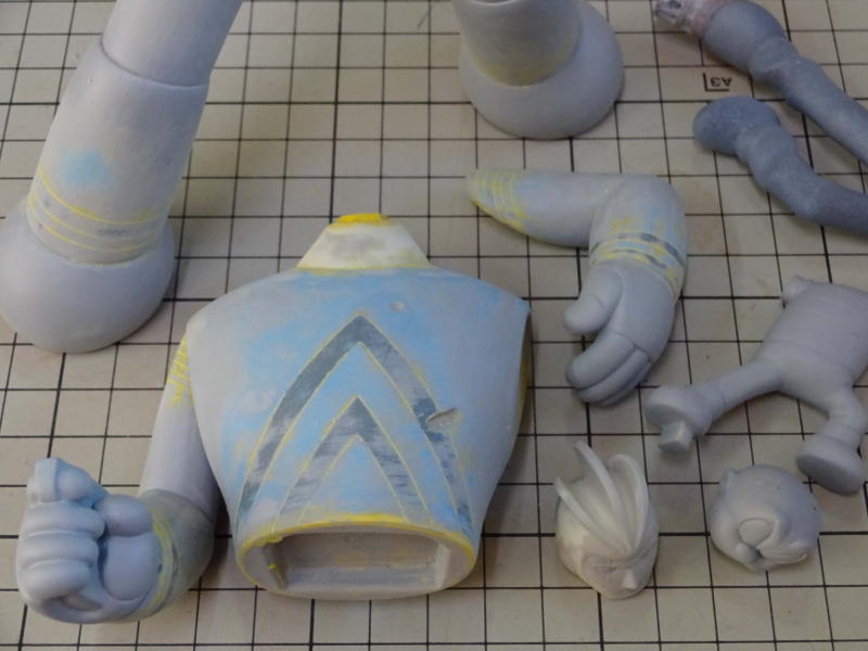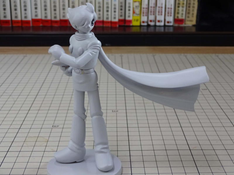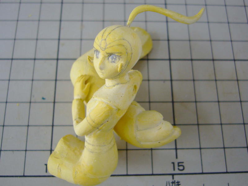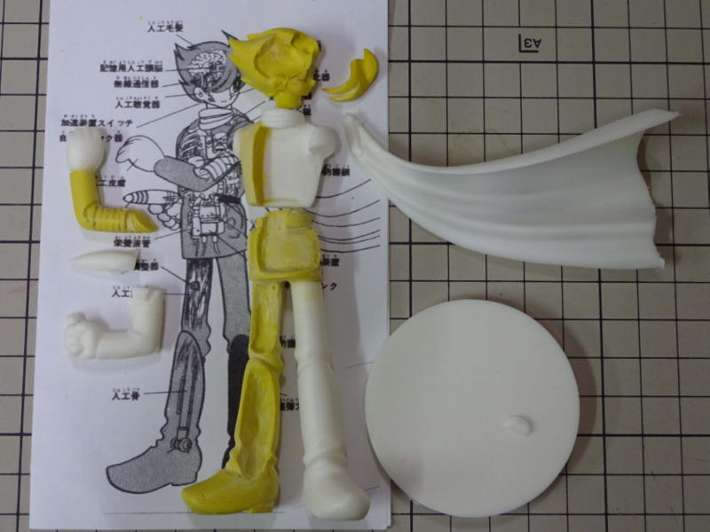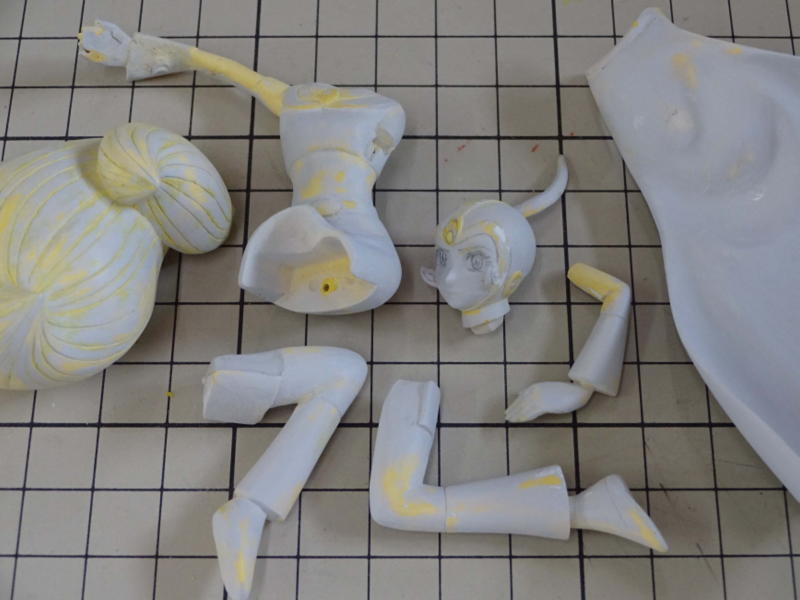 「幻魔大戦」はポリパテで作った原型に色を塗って完成させていたので、キット化のために分割を再検討しながらサフを吹いて表面を再整形してます。 |