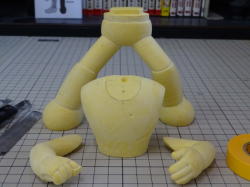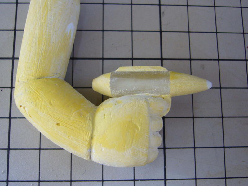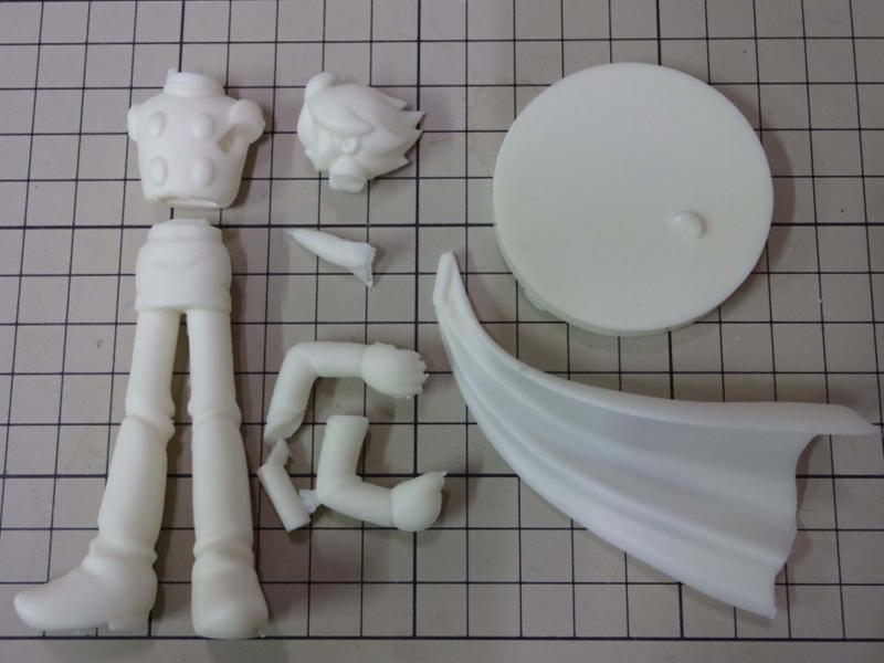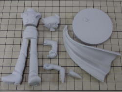 いろいろいじったつもりでしたが改修前とあまり代り映えしませんね。前のほうが良かったということも多々ありますし。 左腕とスーパーガンを分割してから表面処理に入ります。 |