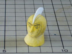 コミック前半は、あごひもで固定するヘルメットのようなものを被ってましたが、後半はあごまで一体化したものになりました。ルーナも同タイプに変化してます。その被り物を1段高くポリパテを盛って成形しました。 頭の飾りを2枚プラ板で追加して、耳みたいなのも付けました。 |