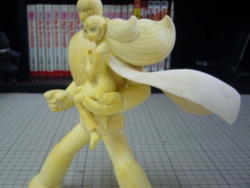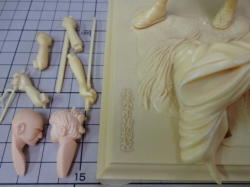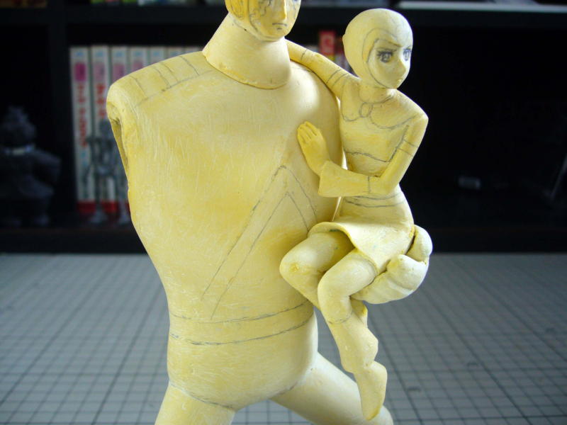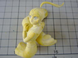 「幻魔大戦」の各キャラはポリパテ原型に直接色を塗って仕上げてます。型取りして複製するほど分割を考えなくてもいいのですが、ルーナの場合、色塗りのしやすさとベガに抱っこポーズなのでこのくらいバラバラになりました。 |