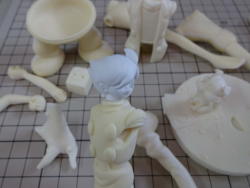フライングしてアイボリーパーツはすでに複製済み。時間がたつと黄ばみが出てしまうクリアパーツの複製作業は許諾待ちでした。 今日の仙台は雨降り。エアコンで湿度を45% に下げてクリアレジンパーツの複製開始です。 |