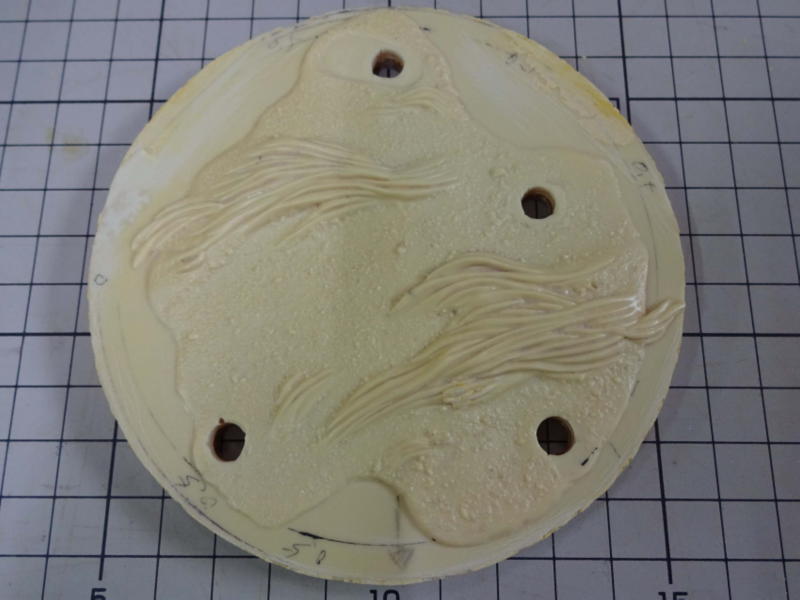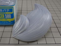 パテがやわらかいうちにデザインナイフやスパチュラで筋を入れました。 |