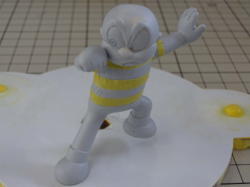 素体はモノクロ007のポリパテ複製品。 ちびの丈の半分くらいの身長です。 能力はテレポート(精神移動)でたいへん重宝がられてますね。「うけとんなあんちゃん」のポーズです。 |