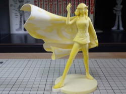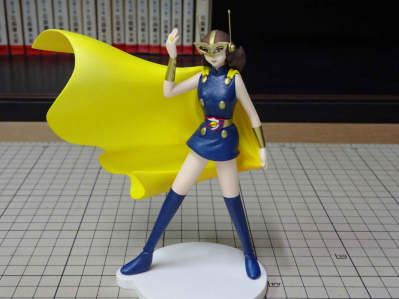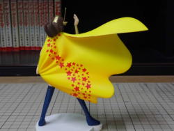 青いコスチュームは、ダークブルーを塗った上からシルバーを軽く吹いてメタリック調にしてます。マスクやボタンはブルーゴールドで塗りました。マントは表に描かれてる帯と星の配置が分からないので保留中です。 顔は月ひかる先生とは別の人です。 |